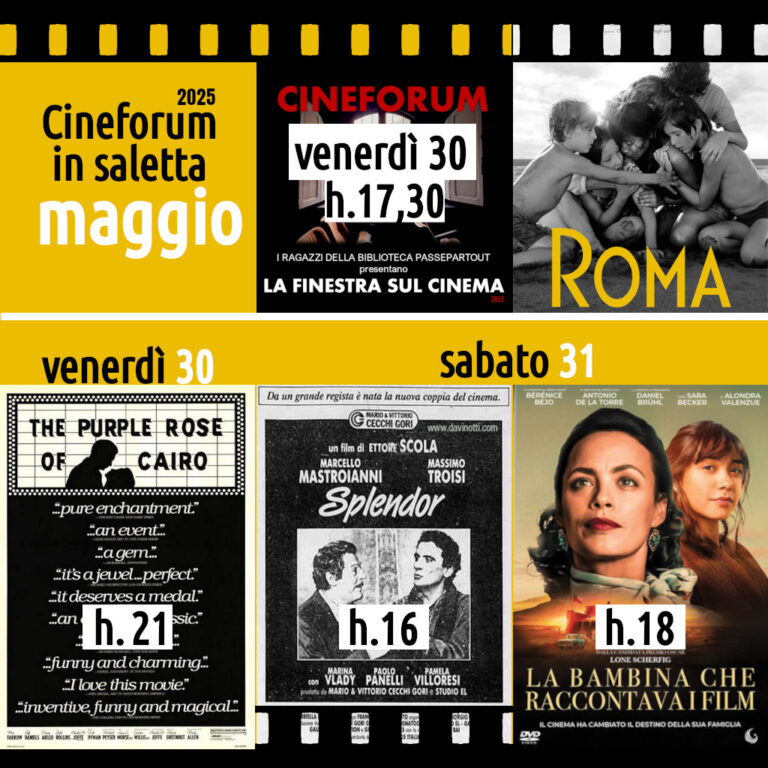 Cineforum in saletta venerdì 30 e sabato 31 maggio 2025